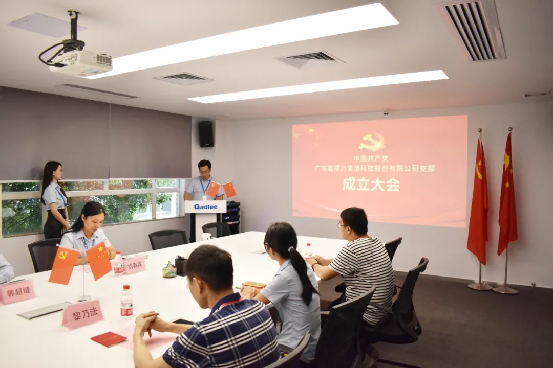 9月17日上午,中國共產黨廣東嘉得力清潔科技股份有限公司支部成立大會成功召開。桂城街道黨建辦主任陳志垣,桂城街道黨建辦副主任林汝健、桂城街道黨建辦區錦釗,夏南一社區黨委委員、組織委員黎乃法等一行領導蒞臨會議。廣東嘉得力清潔科技股份有限公司董事長楊偉光先生、總經理郭超鍵先生、副總經理于梅女士、以及公司黨員、職工代表共同參加了成立儀式。
