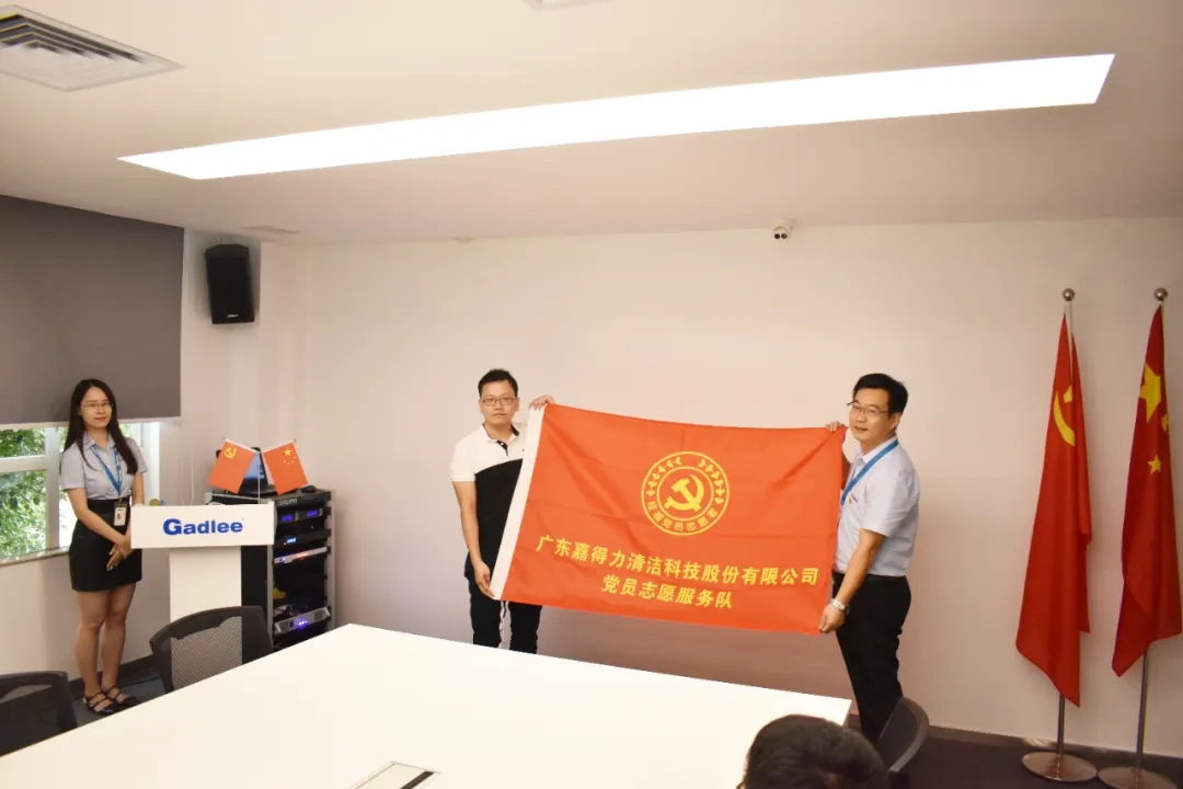 隨后中國共產黨廣東嘉得力清潔科技股份有限公司支部委員會正式成立,同時,也將成立廣東嘉得力清潔科技股份有限公司黨員志愿服務隊,桂城街道黨建辦區錦釗同志授予黨員志愿服務隊隊旗。